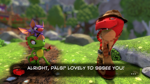 In all honestly, Yooka-Laylee feels a bit underwhelming at first. The main menu looks more low budget than retro and the loading screen features animated characters that stutter as the game loads. Then there’s the opening cutscene, which admittedly looks cute (Yooka and Laylee are absolutely adorable and their world looks inviting) but features text that can’t be skipped and is overlaid with repetitive noises for each character. It feels clunky, sounds annoying and isn’t the most eloquent of beginnings.