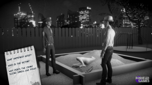 Nick Bounty and the Dame with the Blue Chewed Shoe is a comedic spoof on classic film noir detective movies as well as a narrative driven adventure game inspired by the classic adventure games of LucasArts and Telltale Games. It’s a little bit Maltese Falcon, a little bit CSI, and a little bit Naked Gun. The story follows detective Nick Bounty and his quest to be taken seriously as a real detective. As the case unfolds, he becomes entangled in an absurd mystery that threatens to end his life… and his newly hired partner’s too!